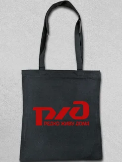 Шоппер с логотипом РЖД и фразой Редко живу дома