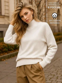 Свитер вязаный с шерстью мериноса с воротником стойкой