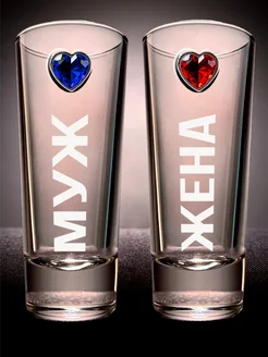 Парные шоты муж жена с сердцем и гравировкой