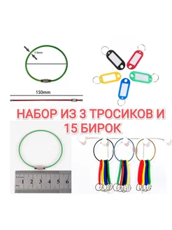 Набор тросик для ключей 3 шт + бирки для ключей 15 шт