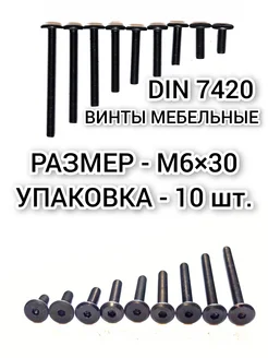Винт мебельный DIN 7420 М6х30 чёрный 10 шт
