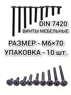 Винт мебельный DIN 7420 М6х70 чёрный 10 шт