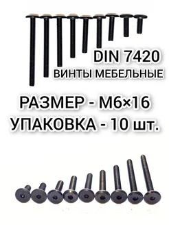 Винт мебельный DIN 7420 М6х16 чёрный 10 шт