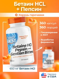 Бетаин гидрохлорид, пепсин и горечавка, 360 кaпсул