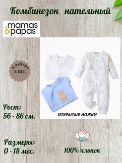 Комбинезон нательный (слип, пижама) Papas&Mamas, 3 шт