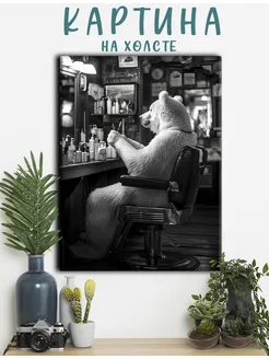 Картина барбершоп, мужские стрижки, бритье, медведь(20)40х60