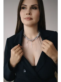 Многослойное колье на шею,ожерелье с крестом,чокер