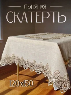 Скатерть на стол тканевая кружевная 120х150 1шт льняная