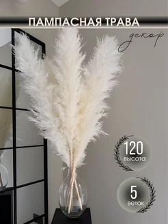 Пампасная трава для декора высокая жемчужная, белая 5 шт
