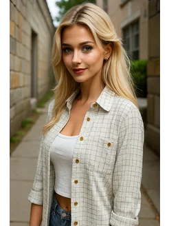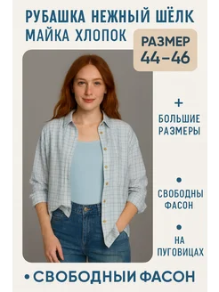 Блузка рубашка в клетку с длинным рукавом летняя с майкой