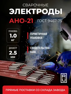 Сварочные электроды АНО-21 стандарт Флагман d 2.5 1.0 кг