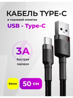 Кабель короткий Type-C для быстрой зарядки 0,5 метра, USB