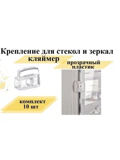 Крепление для стекол и зеркал, прозрачный пластик 10шт