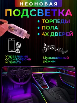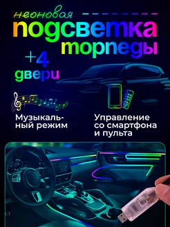 Подсветка в машину Торпеды Пола Дверей Bluetooth USB