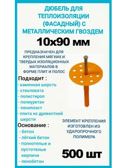 Дюбель для теплоизоляции 10х90 металлический гвоздь 500шт