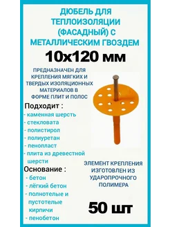 Дюбель для теплоизоляции 10х120 металлический гвоздь 50шт