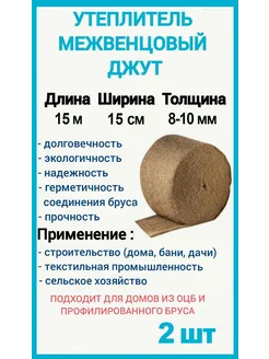 Утеплитель межвенцовый джут толщина 8-10мм ширина 15см 2шт