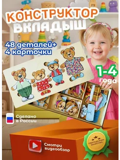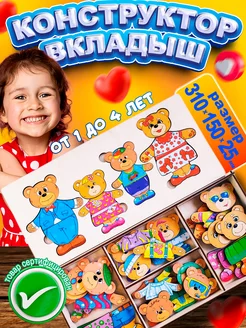 Сортер-вкладыш деревянный Конструктор-персонаж Головоломка