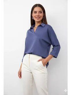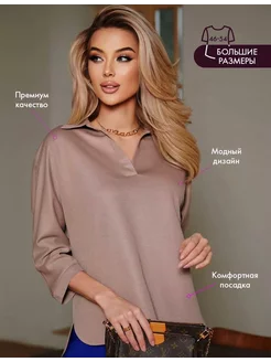 Блузка кофта поло женская трикотажная оверсайз базовая