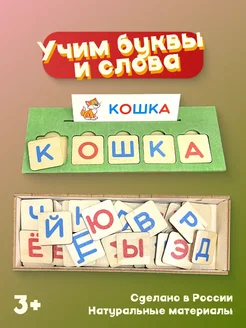 Развивающая деревянная игра пазл "Учим буквы и слова"