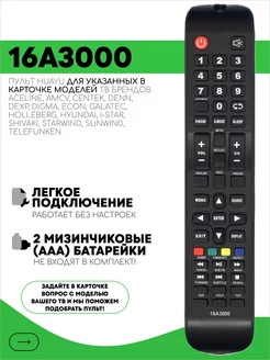 Пульт 16A3000 для тв DEXP Galatec Centek Hyundai Telefunken