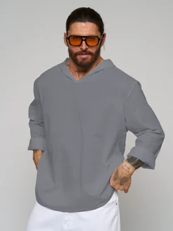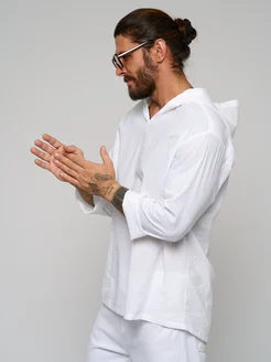 Рубашка туника летняя пляжная с капюшоном и длинным рукавом