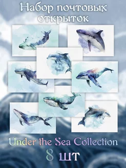 Открытки для посткроссига Киты и Дельфины, 8 шт