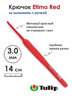 Крючок вязальный с ручкой Тулип 3 мм ETIMO Red
