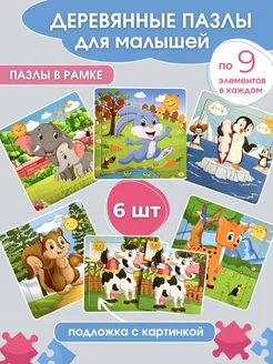 Развивающие деревянные пазлы для малышей набор 6 штук