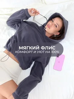 Худи теплое оверсайз с капюшоном зимнее из флиса