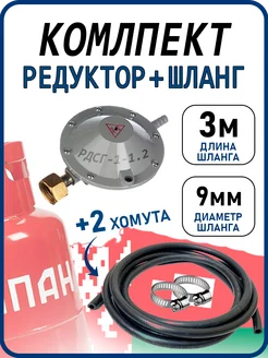 Редуктор газовый пропан с шлангом 3 метра и хомутами
