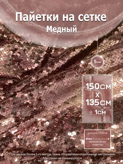 Ткань пайетки на сетке медь отрез 150х135