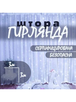 Гирлянда штора для дома улицы, 3х2м, теплый белый