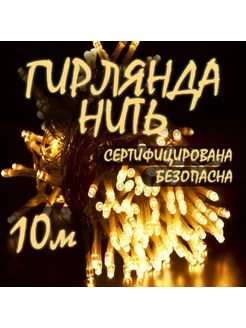 Гирлянда - нить для дома улицы, длина 10 м,теплый белый свет