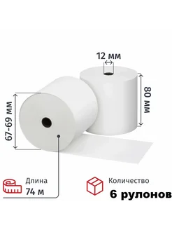 Чековая кассовая лента 80мм 74 метра 6 штук