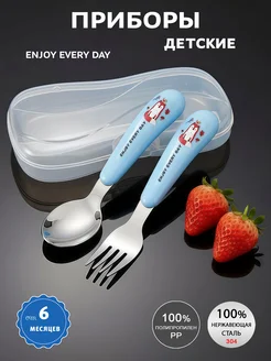 Столовые приборы детские, вилка и ложка в кейсе