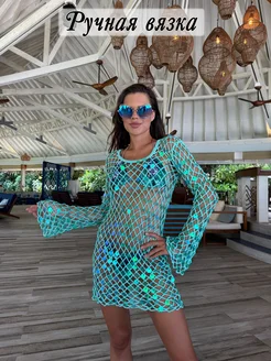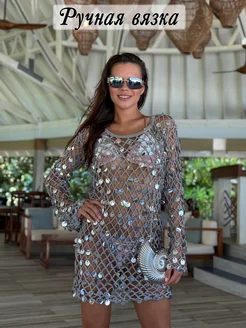 Платье туника пляжная вязаная с пайетками короткая