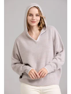 Свитер оверсайз с капюшоном вязаный теплый