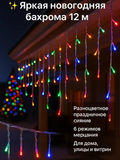 Бахрома LED цветная 12 м, новогодняя гирлянда для декора