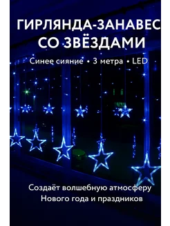 Светодиодная гирлянда-занавес со звёздами и синей подсветкой
