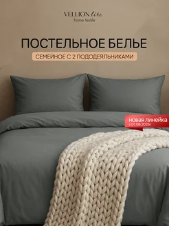 Постельное белье семейное с 2 пододеяльниками хлопок поплин