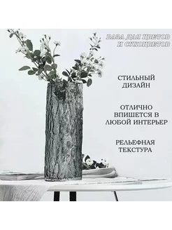 Ваза для цветов сухоцветов стеклянная цвет прозрачная серый