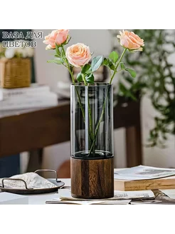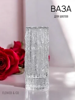 Ваза для цветов и сухоцветов стеклянная прозрачная