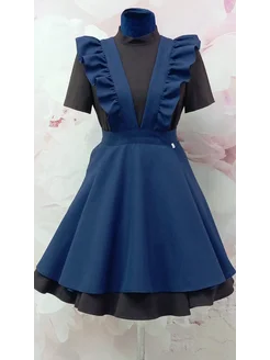фартук школьный синий на пуговицах застежка