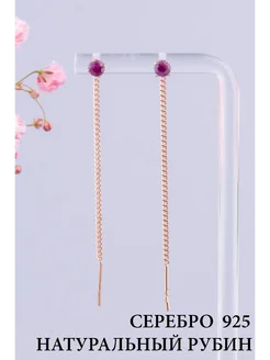 Ювелирные серьги протяжки серебро 925 585 с рубином