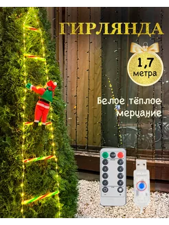 Гирлянда уличная Дед Мороз поднимается по лестнице