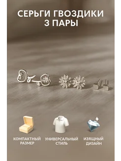 Серьги гвоздики (набор из 3 пар) Лотос Клевер Сердечко