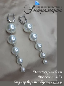 Серьги длинные висячие с искусственным жемчугом