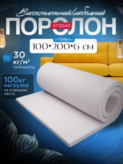 Поролон мебельный листовой марки ST3040 100х200х6 см