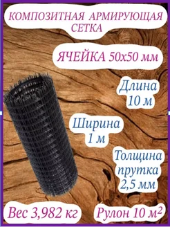 Композитная армирующая сетка d 2 5мм 50x50мм 1x10м